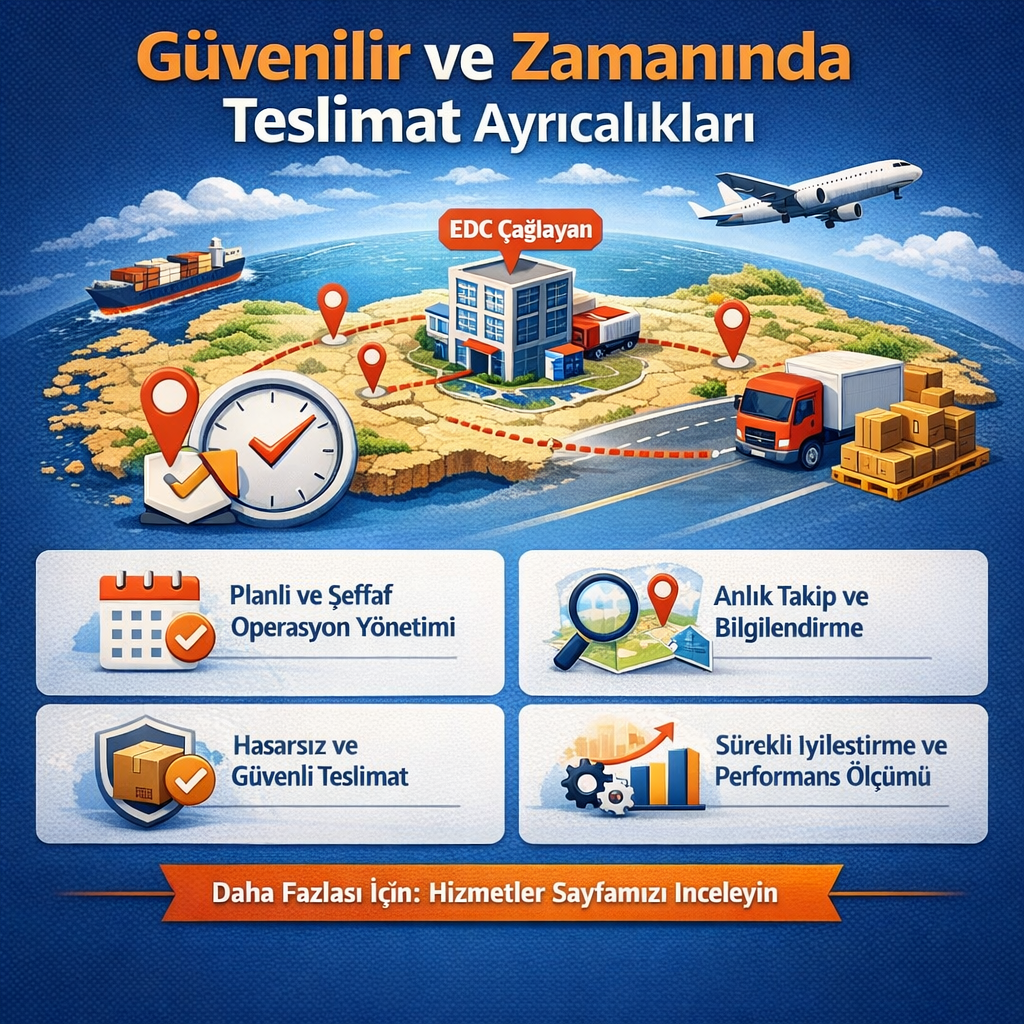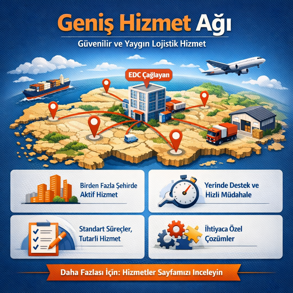 EDC Çağlayan Nakliyat olarak, tüm sevkiyatlarımızda planlı süreç yönetimi ile yüklerin güvenli ve zamanında teslim edilmesini sağlamaktayız.